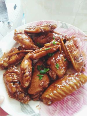 加葱花是为了点缀鸡翅,也可能稍微遮掩酱油的味道。看个人口味
