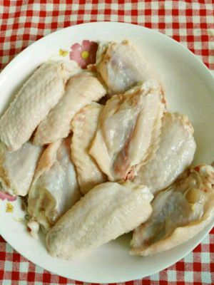 把鸡翅多用水反复清洗干净,用刀背拍松鸡翅。