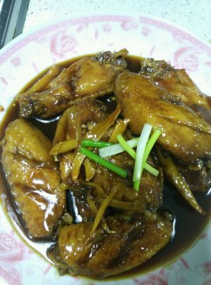 锅里放适量油,油热接着放鸡翅,中大火煎成两面微焦,放入姜片或姜末,翻炒片刻