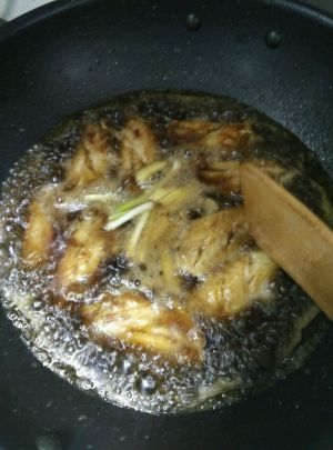 煎金黄后加葱白、姜、可乐、生抽一起下锅,大火烧开,然后用小火煮约15~20分钟,到慢慢收汁即可