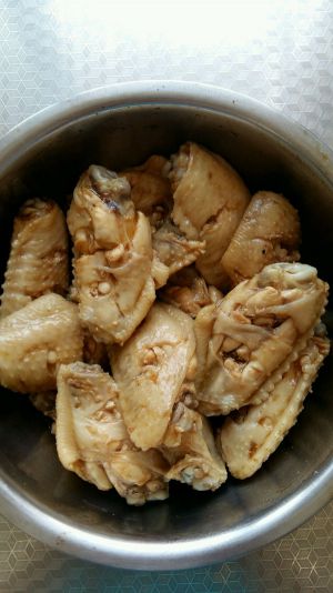 鸡翅洗净焯水捞出,在翅身改刀(方便入味)。适量放入料酒和盐腌制鸡翅,时间15分钟