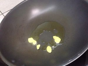 炒锅加入橄榄油和姜翻炒至闻到姜味