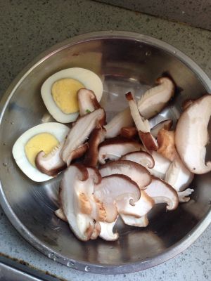 加水、酱油、醋、鸡精、盐、胡椒、香菇烧开。