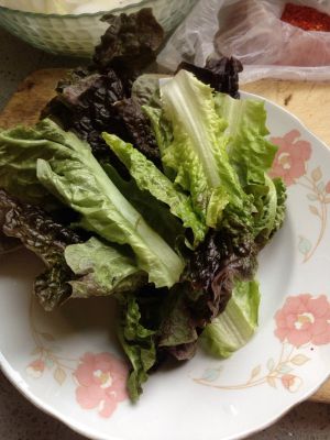 碗里放入盐、味精、酱油、醋(多点),姜蒜末以及过水的生菜
