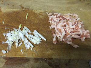 葱姜蒜炝锅~ 下肉丝炒变色~