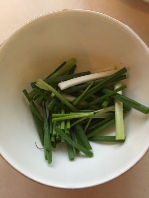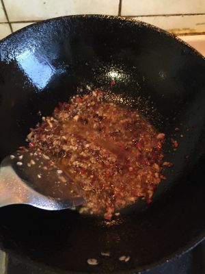 炒定型,加切好的葱段,姜蒜末,小米辣。
