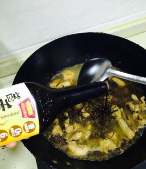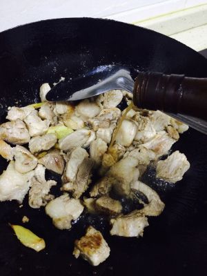 加入料酒适量,继续中小火炒,炒到料酒没有了,把锅内多余的油倒出,留三分之一的油。