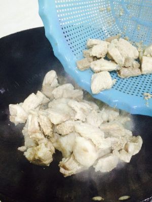 放入煮过并沥干水份的肉块,翻炒均匀;