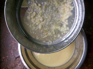 搅拌好之后,用筛子过滤下,分离蛋挞液
