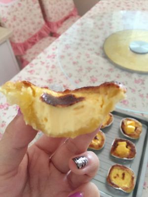 耐心等待之后,香甜的内陷,酥松的表皮的美味蛋挞就好了。