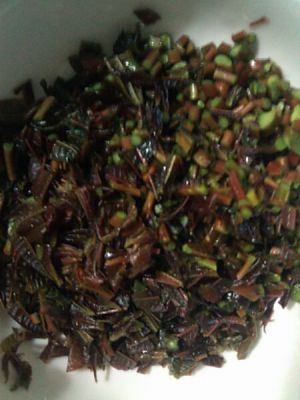 把红香椿把切掉,劈成一根根。去掉老叶。清洗干净。