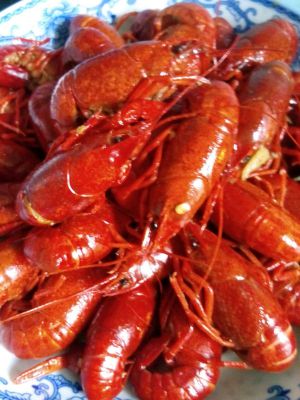 两斤龙虾,放入清水中,加入料酒,桂皮,八角,煮熟