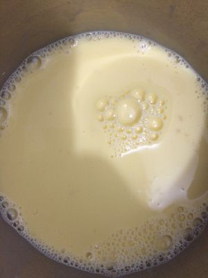 将玉米淀粉筛入放凉的奶液中,边放边搅拌直到没有颗粒,这就是挞液了,要过筛一到二次,不过也可以