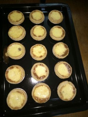 看到蛋液有点焦焦的就可以关掉烤箱,取出蛋挞了!