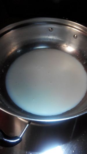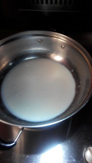 牛奶、糖搅拌至糖融化,放炼乳搅拌均匀。