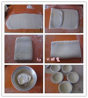 第一次三折完成后面团会不整齐,但是三折过后,面团会变得平整光滑。一份酥皮大概可以做30个大号蛋挞模,蛋挞水的分量则可做16个左右。如果一次用不了这么多,可以在最后切开自己需要的分量。其他的用保鲜膜冷藏,一周内用完,冷冻最好一个月内用完。