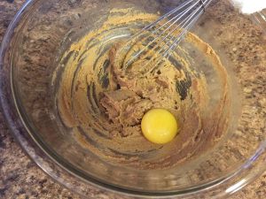 打入半个鸡蛋,搅拌至完全混合。