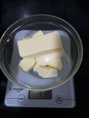 120g黄油软化,我是隔水软化的,天气太冷室温软化不可能