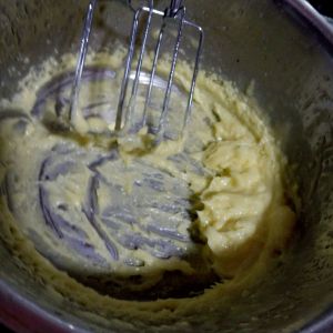加进糖粉(糖粉加进去后不要急着启动打蛋器,用打蛋器的头稍微搅拌一下在启动打蛋器)