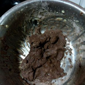 筛入低筋面粉、可可粉,翻拌成团。