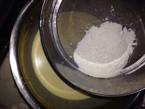 蛋黄与牛奶混匀后加入面粉混匀,并过筛几次,这样蛋奶液的口感更细腻。然后放入烤箱烤制。我的是迷你烤箱,10分钟就烤好了。