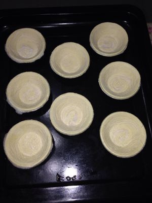 烤箱预热,上下火200℃,预热十分钟,蛋挞放烤箱中层,烤18-20分钟