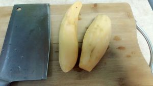 1地瓜洗净去皮,切成滚刀块,最好别太厚,因为后面油x炸费事