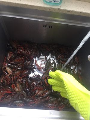 小龙虾取出后,找一个大盆,放入清水,水量刚没过小龙虾,撒盐,养一会,然后换水,冲洗,再放水撒盐,三遍差不多完成初次清理