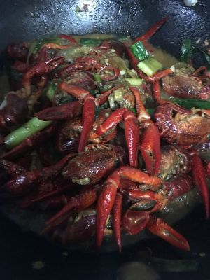 炒出香味后,放入小龙虾,翻炒!!!加入:生抽、盐巴,十三香、糖、……继续翻炒……倒入一小瓶二锅头、继续翻炒……调料主要看你口味!(各人感觉多一点调料,味道好)