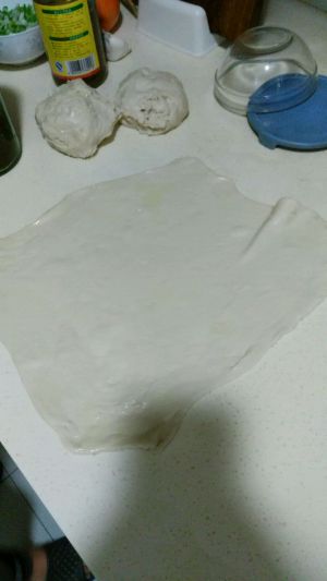 案板上抹一些油比较好弄 把面铺开 薄一点在上面抹上油