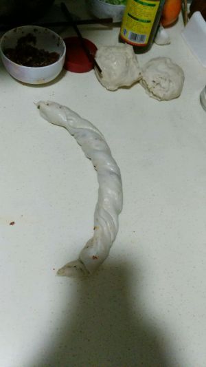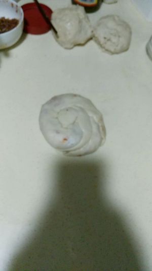 我用的是面包机和面 之后分小圆 擀开后把香油调和的十三香盐均匀抹进去 卷起来 醒一会