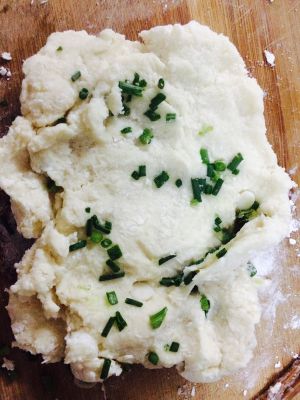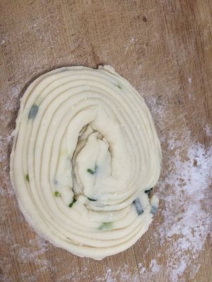 开锅上油之前.放些葱花在面团里面.继续柔.然後分批下油锅