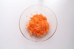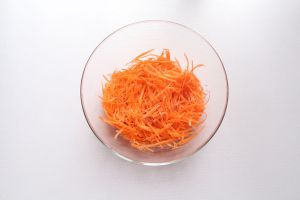胡萝卜用刨菜器刨成丝。