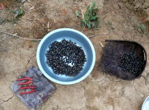 油热后,先放田螺爆炒,后加入辣椒粉,孜然粉,干辣椒段,约5分钟