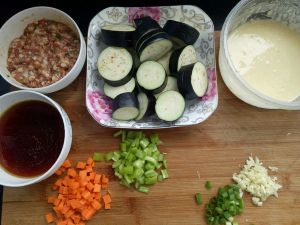 茄子洗净削皮切横片,一刀断一刀不断 猪肉剁成肉末