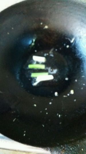 第二,葱段切好,放到温油里炝出味道,把葱捞出扔掉。温油热过,放入小碗里。
