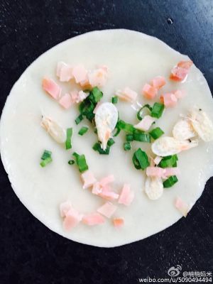 做法2:饺子皮火腿葱油饼