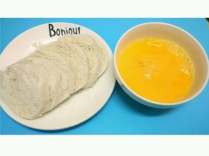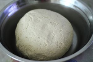 按照先液体后粉类的顺序,把食材放进面包机揉成光滑的面团。