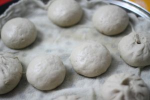 用手将面团滚圆,放入蒸锅中静置10分钟左右
