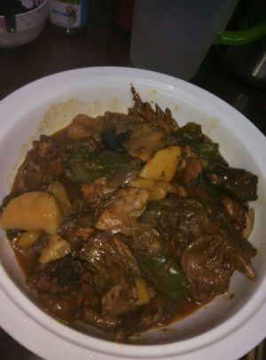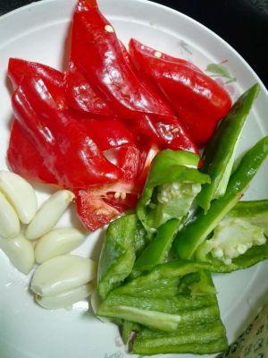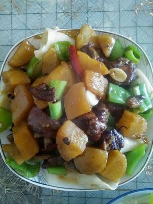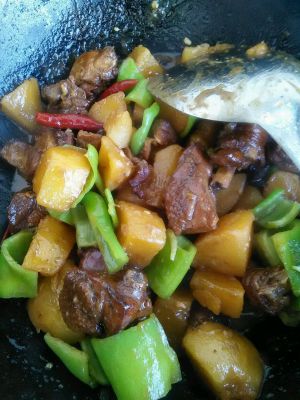 闷煮了大概二十分钟,出锅之前加入红辣椒,青辣椒,和一点鸡精继续翻炒(时间不定这要看你食物的大小来定时间,自己把握)