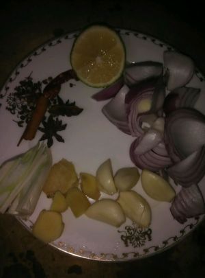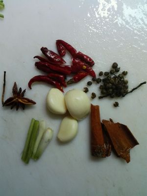 准备八角,桂皮,葱白,蒜,干辣椒,花椒