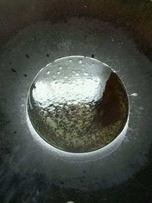 热锅,烧油放入花椒炒出香味,在加入冰糖炒至融化(有的把花椒炒了之后捞出来了,我做的没有把花椒捞出来)