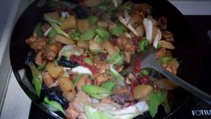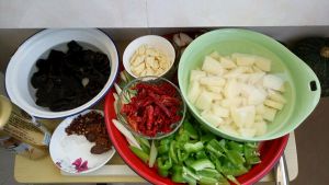 洋芋透了后放辣子,葱,蒜,翻炒至辣子熟