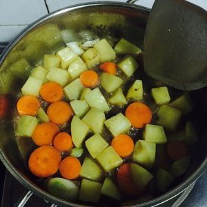 加满水慢慢中火熬煮1个时,后加咖喱小火熬煮10分钟即可。