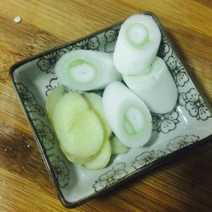 葱姜准备,根据个人喜好切,我切大片为了后面不吃到姜。