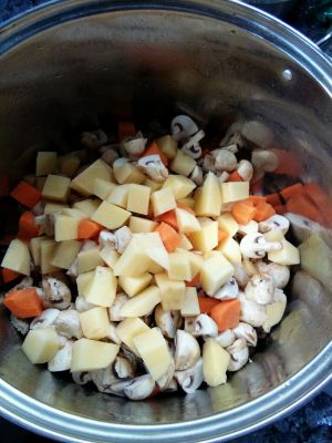 炖煮好后放入土豆,继续小火炖煮,或者大火收汁,这取决你当时水的多少,喜欢汤泡饭的可以多留一些汁,盖浇饭很好吃的