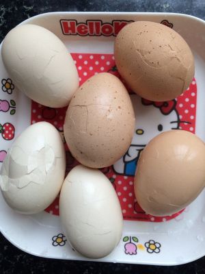 把鸡蛋洗干净后,煮熟!晒凉之后轻敲至有微微裂纹。