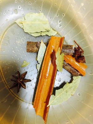 锅里加入八角桂皮和香叶,红茶包