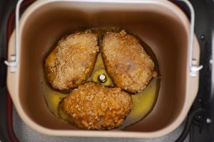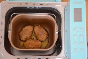 手机wifi启动烘烤功能60分钟。在面包桶内倒入适量的菜籽油,大概5分钟后放入鸡翅。煎至两面金黄,中间翻面烘烤。