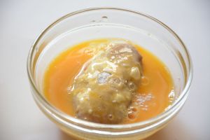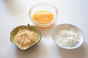 接着沾点鸡蛋,再放入面包糠包裹均匀